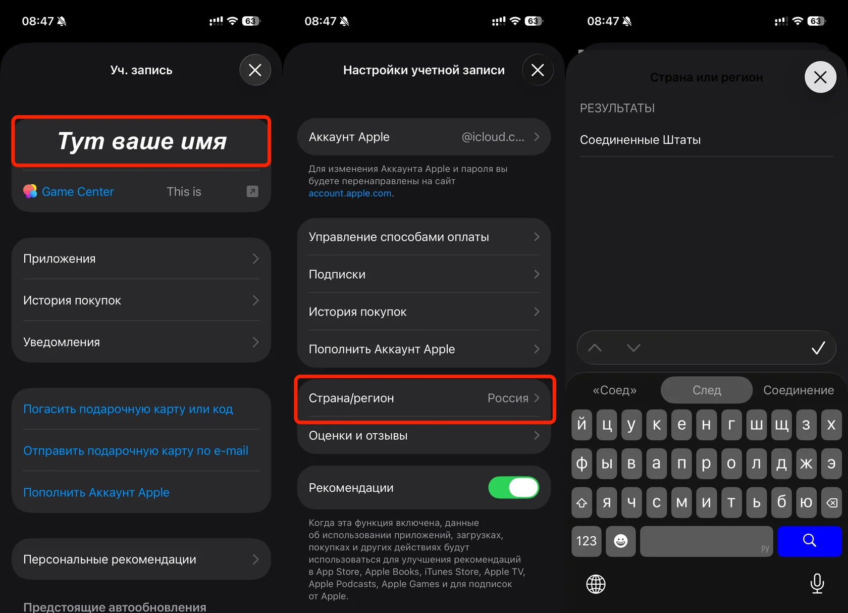 Отлично! Мы зашли в новый аккаунт. Теперь нужно настроить регион на США (или на тот, который вы хотите). На скриншотах ниже показываем всё по шагам.
